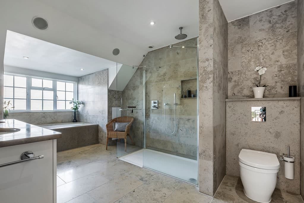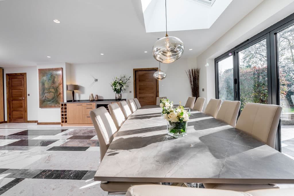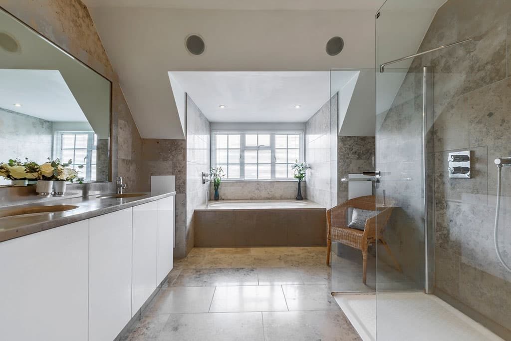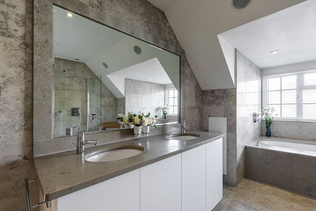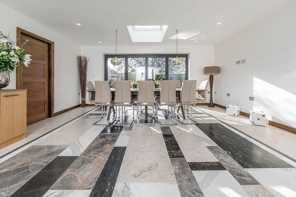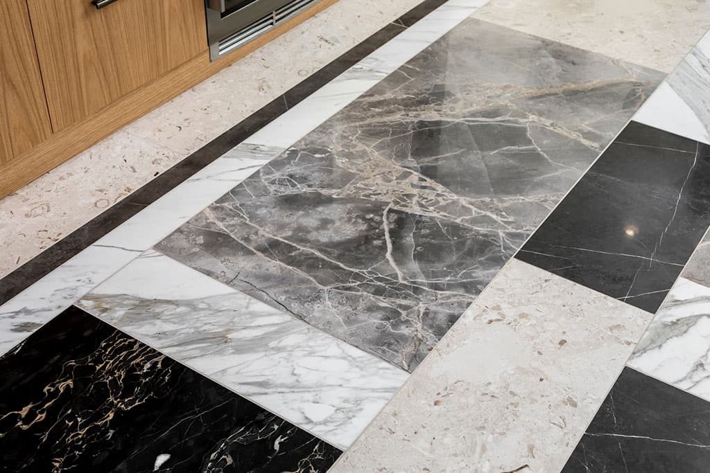 Materials Used Portoro Black & Gold, Fior Di Bosco, Statuario, Grey Marquina, Crema Perla, Jura Blue, Jura Beige, Crema Marfil, Marron Imperial, Dekton Kira Natural, & Silestone Classic White.